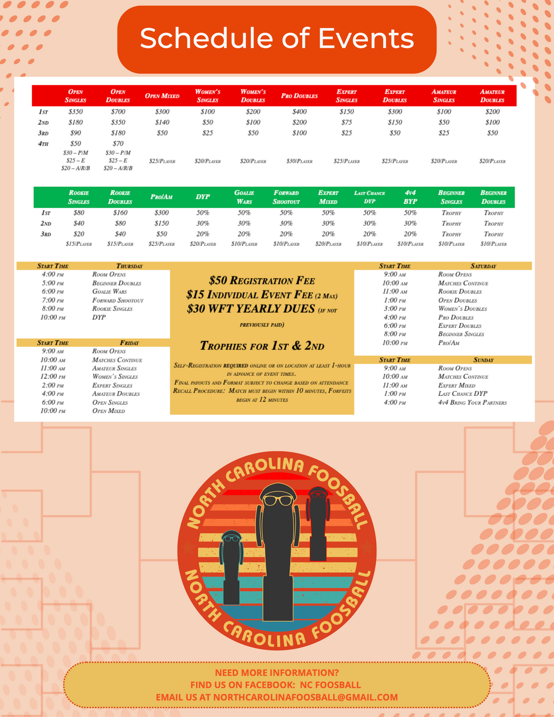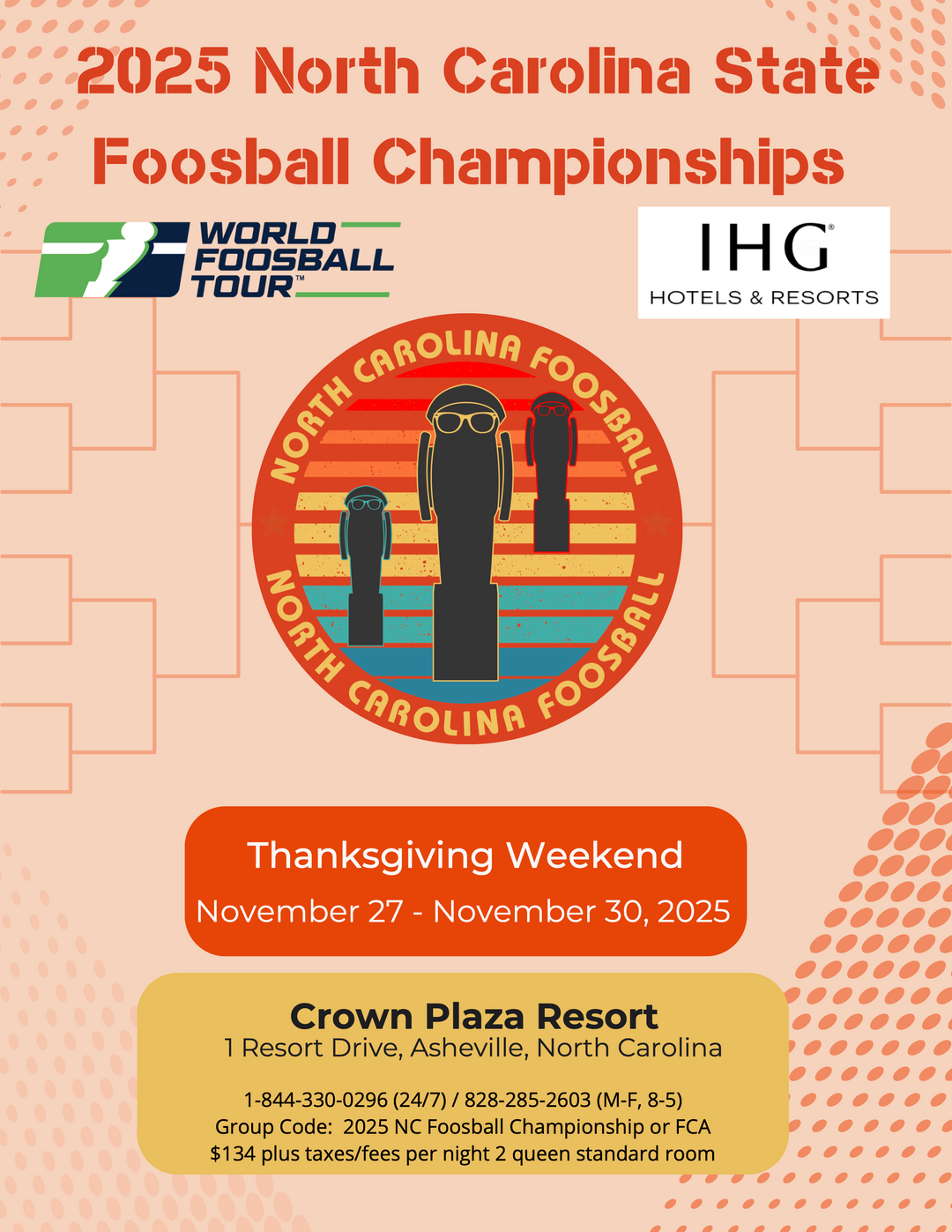 Group Code: 2025 NC Foosball Championship or FCA