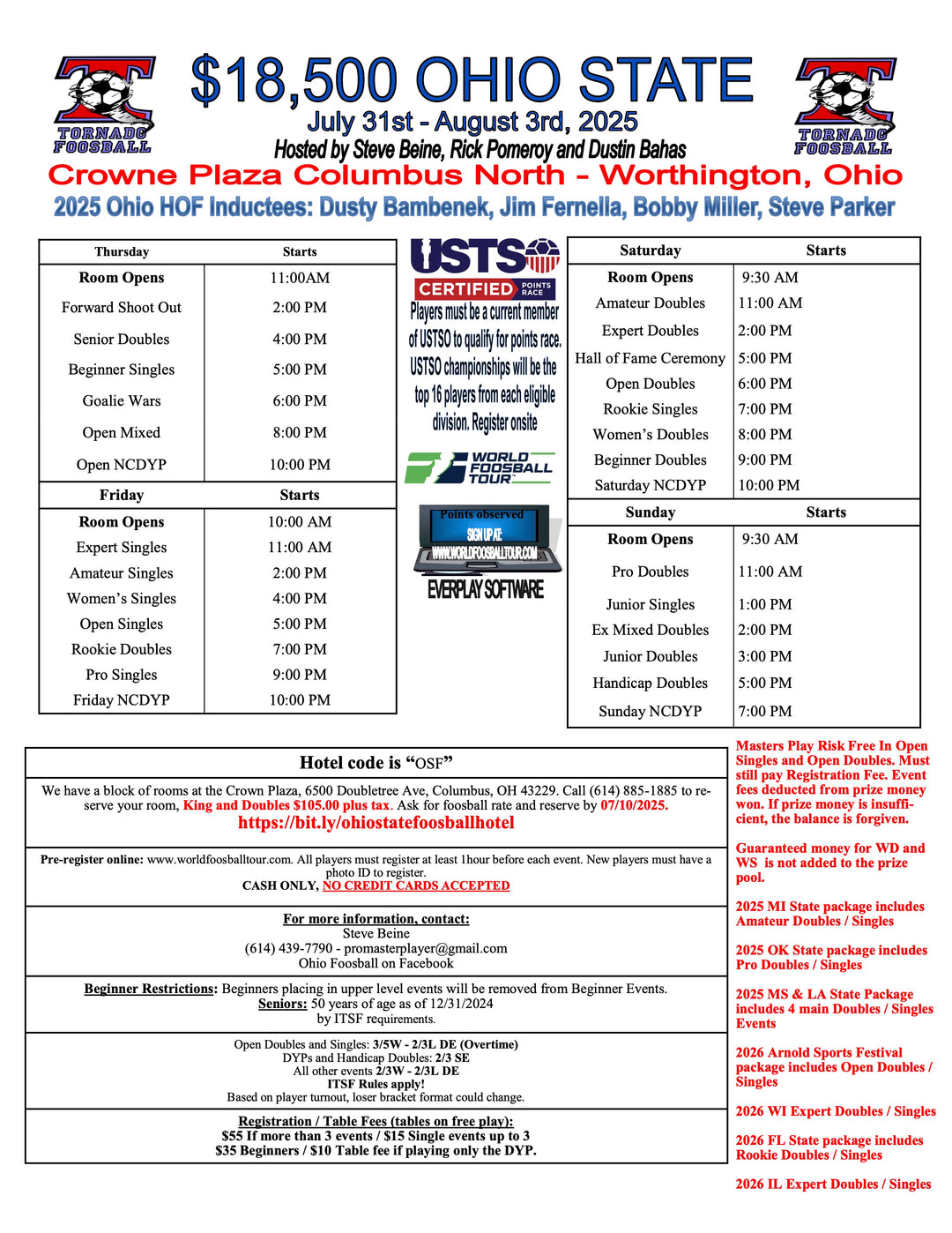 Click link below or call (614) 885-1885 to reserve your room. Ask for foosball rate.